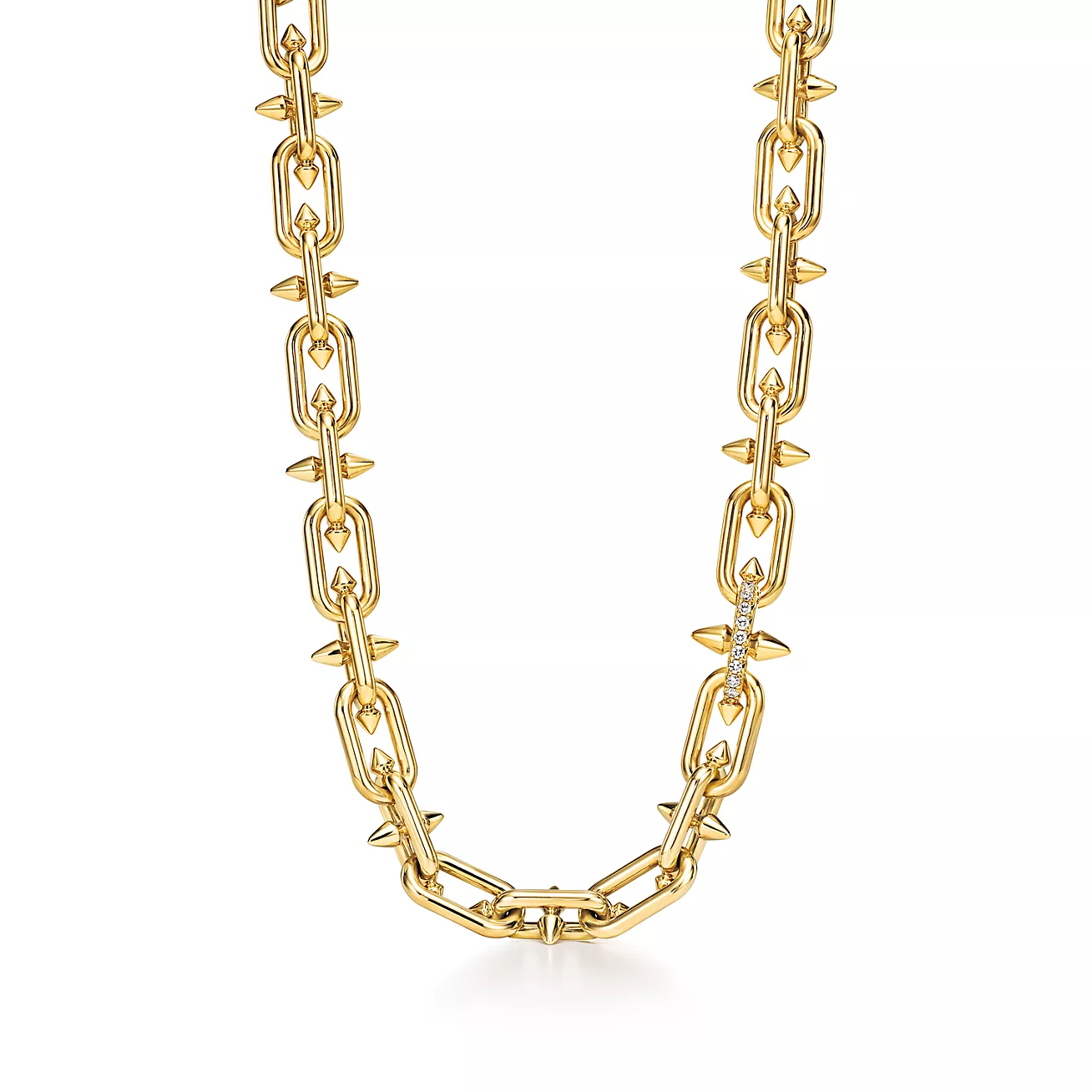 在设计上,该联名系列通过三叉戟的锋利与力量,展现了勇敢、独立和张扬不羁的精神。系列中的每一件作品,无论是项链、耳环、手链还是戒指,都充满了锋芒之感的矛状尖刺元素,这些元素巧妙地糅合在设计中,尽显张扬不羁的朋克精神。珠宝作品中的链环设计交织碰撞,形成了一种张弛有度、平衡有致的美学风格。锐利的棱角与流畅的线条形成了鲜明的对比,使得每一件作品都充满了动感和生命力。