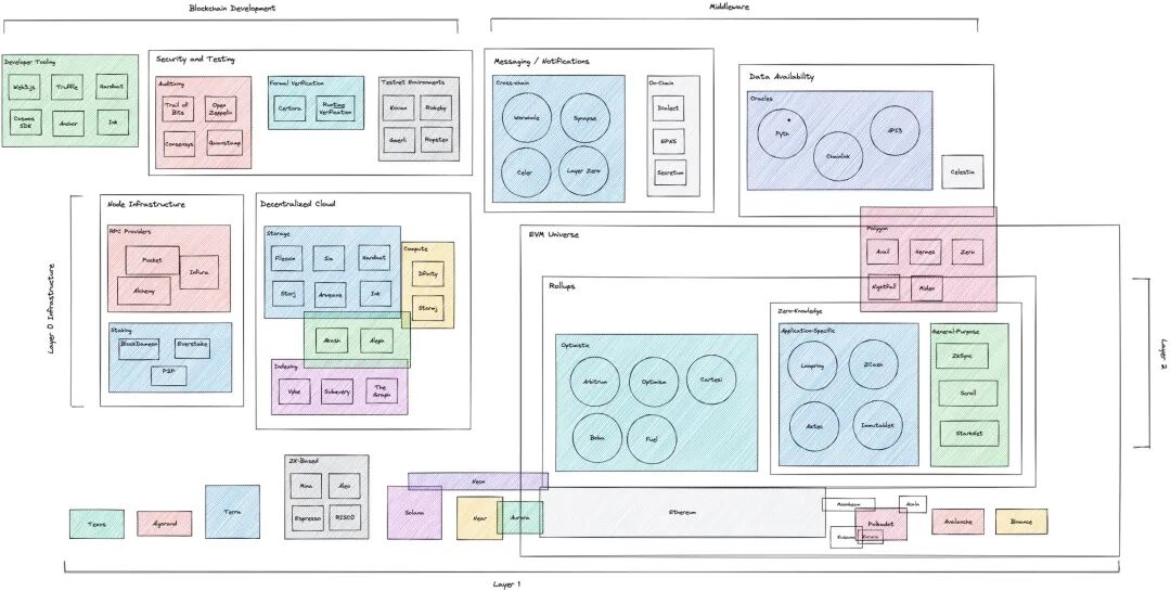 我们将区块链基础设施的“生态系统”定义为旨在支持L1和L2在以下关键领域发展的协议:
