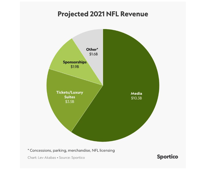 今时今日的体育产业是如何赚钱的?体育是大生意。仅 NFL(美国国家橄榄球联盟)在2021年就赚了 170 亿美元。