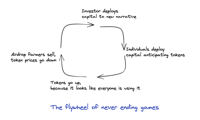 我可以说,我们的行业有一个强烈的彼得-潘综合症的案例。它描述了一种困境,一个人在成长过程中拥有成人的身体,但却拥有儿童的头脑。在我们所玩的这个游戏中,作为创始人、投资者和技术的使用者,在外部看来往往是幼稚的。只要有资本可以通过这些游戏赚钱,就会有玩家,游戏就会继续下去。