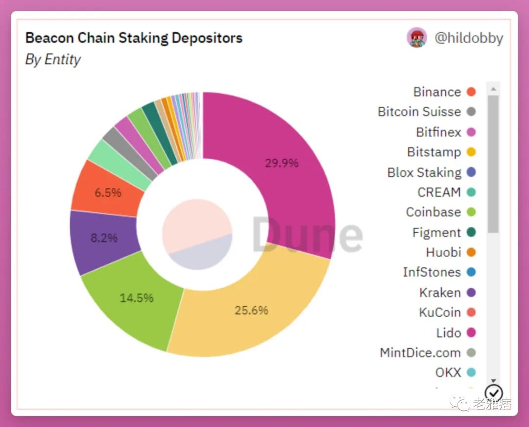 流动性质押占所有ETH质押的33.4%。Lido占据主导地位,但RocketPool的份额最近有所增长,占ETH总质押的1.95%。