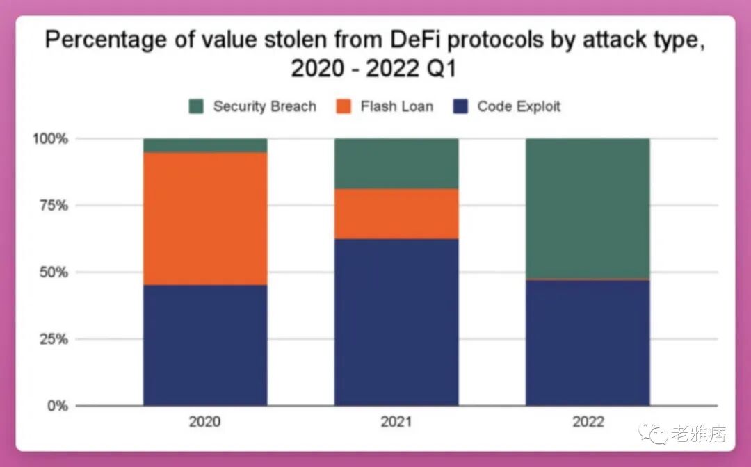 在2022年,闪电贷攻击几乎消失了。现在大多数黑客攻击都是由于安全漏洞或代码漏洞造成的。