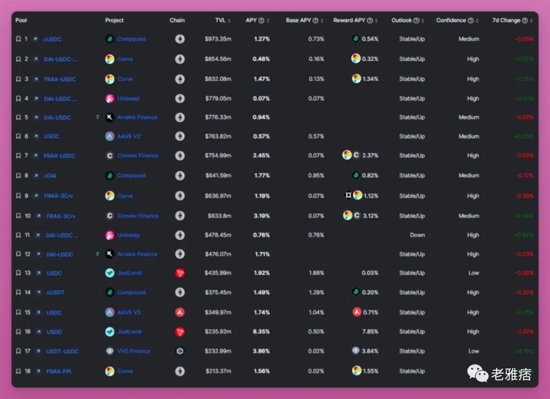 大多数稳定币贷款人在Compound、Curve、Uniswap或Aave上的收益在0.1%至1.5%之间。