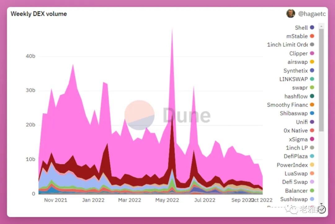 DEX的每周交易量一直在下降,但仍维持在80亿美元的水平。