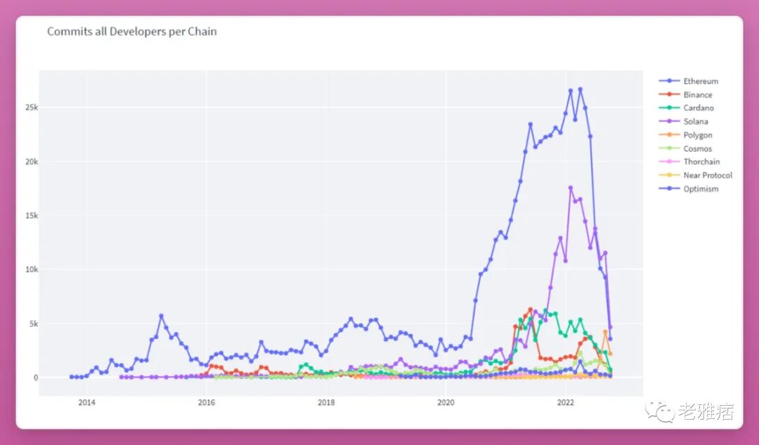 当涉及到每条链的代码提交(跟踪代码库的更改)时,情况看起来更糟。