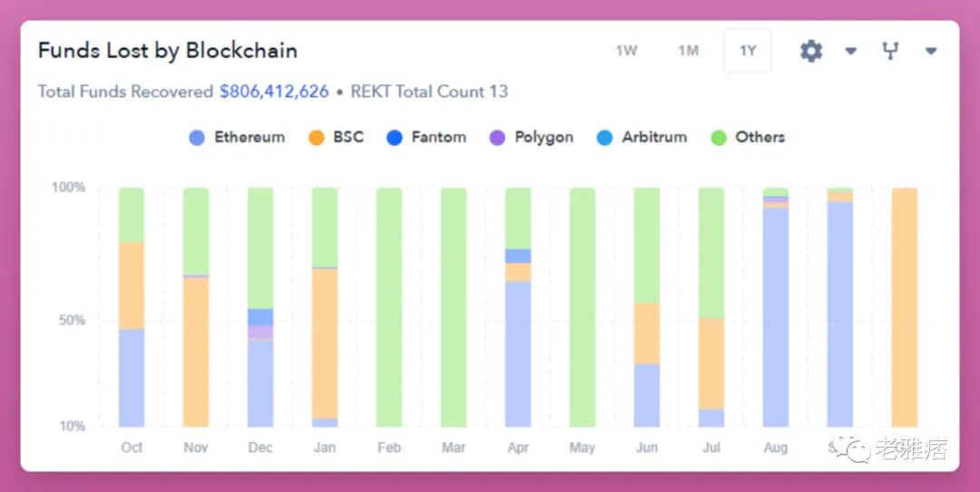 此外,DeFi Yield App数据显示了因区块链而损失的资金。