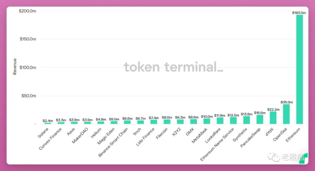 按90天收入计算,以太坊以1.931亿美元遥遥领先。紧随其后的是: