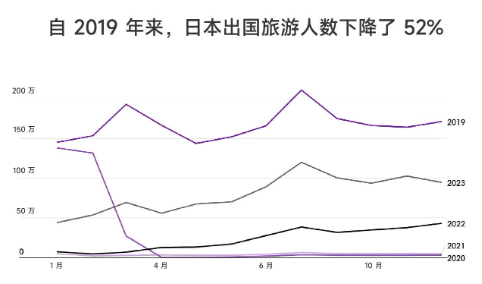 日本国家旅游局(JNTO)的数据显示,赴日游客人数最近已恢复到疫情前的水平,但自 2019 年以来,日本海外旅游人数下降了 52% 以上。日元疲软是一个重要因素:吸引了更多的游客来日本,同时也让日本居民留在了国内。这两种不同的消费支出为市场繁荣创造了理想的条件,使其能够抵御经济逆风。