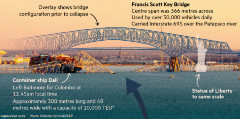 老化的基础设施和船只的尺寸在事故导致坍塌后成为人们关注的焦点。 FINANCIAL TIMES -Baltimore tragedy puts focus on US bridge quality.pdf-size