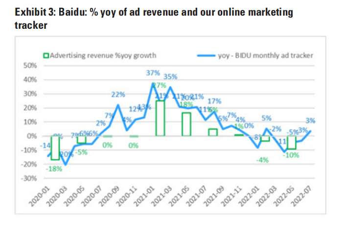 BIDU第二季度的结果是在线收入,但在百度核心和IQ(first take)两方面的利润均强于预期,EPADS(nG)同比增长38%。GSe,或与共识相比+45%。具体而言,1)持续提高毛利率,为2012年第3季度百度核心盈利增长铺平道路,这是自2011年第1季度以来从未出现过的趋势;2) Ads%年环比趋势在8月出现有意义的复苏,表明第三季度可能与年环比持平;3)与同行相比,云计算收入年环比增长超过行业31%,在-6%至+10%之间,并可能在2012年下半年连续加速。我们认为,这组结果应进一步证明管理层在第三季度恢复百度核心盈利正增长方面的稳健执行力,通过其相对有弹性的广告业务(40%+运营利润率)和快速增长的人工智能云(利润率同比和季度均有所提高),以及s&M和G&A在下半年的额外节省,在2012年下半年解锁,从2013年下半年开始,其ASD订单和吉都电动汽车交付的大规模商业化带来了增量收入。 ☟☟☟ 高China Technology_ Internet_ BIDU_IQ_ 2Q22 profit beat, ads recovery and improving cloud margin to l-size2.27MB