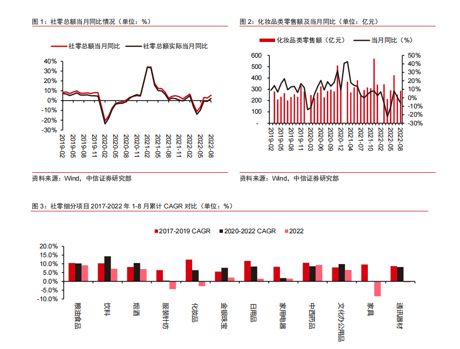 目前市场的主要分歧在于,需求端相对疲弱趋势下,美妆行业未来发展空间判断以及头部国货能否在愈加激烈的竞争中保持快速增长。我们认为:①短期确实存在压力,但消费复苏时美妆需求有望明显反弹,同时从客单价角度看中国护肤品市场规模仍有 2~4 倍发展空间;②在理性消费、“性价比”意识提升趋势下,未来竞争将持续更加聚焦于产品,国货正在逐步突破国际大牌的技术/原料“封锁”,在当下“纯净美妆”成为国际头部品牌纷纷发力的热点方向,而国货在植物成分方面具有更多优势。梳理两条投资主线:①重点推荐研发资源积累丰富、体系日臻完善的头部国货标的珀莱雅、华熙生物、贝泰妮、鲁商发展、丸美股份;②重点推荐随着研发/原料端重要性提升、具有一定资源积累的产业链上游受益标的嘉必优等。 ☟☟☟ 美妆及商业行业跟踪报告:疫情下美妆行业迎变,头部国货逆势进击-20221024-中信证券-45页.pdf-size1.44MB