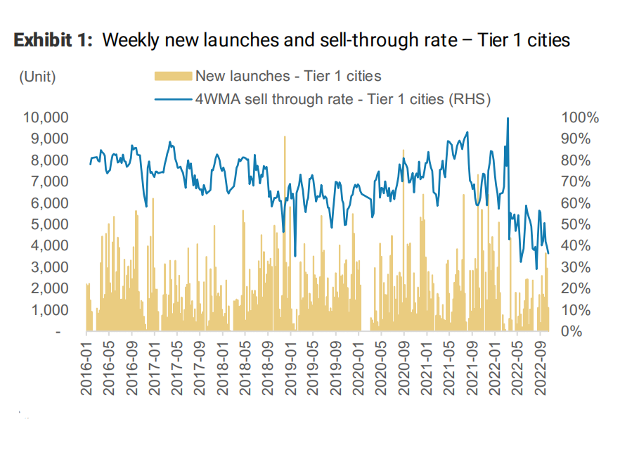 截至2013年10月的一周,28个城市的基本单元销售额年环比为-15.6%(上周为-29%),同比增长10.2%:一线城市销售额年环比为-2.6%(上周同比增长8.1%),同比上涨9.8%。二级城市销售额年环比为-16.6%(上周为-35%)和+12.5%。三级城市销售额年环比为-47%(上周为-47%)和-19.9%。 ☟☟☟ 2022-10-24-Morgan Stanley-China Property Database Tracker-98868094.pdf-size2.43MB