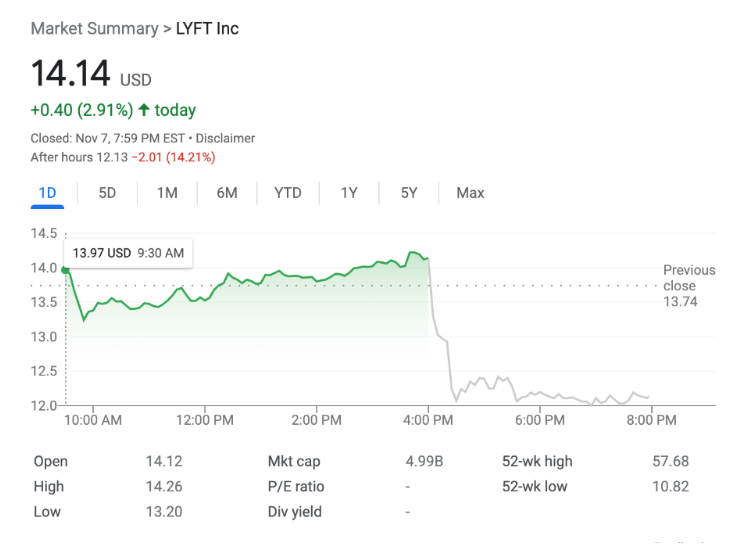 《华尔街日报》——Q3业绩令人失望,Lyft股价盘后大跌14%查看 》