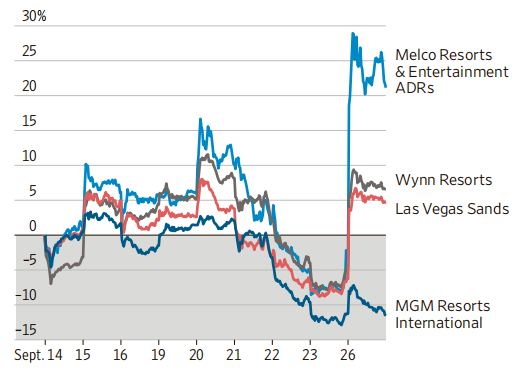 《华尔街日报》——久违近3年澳门将迎中国旅行团,美赌场股集体飙涨查看 》