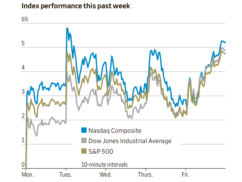 过去一周,受市场预期美联储或放缓加息步伐等因素提振,美国三大股指集体收高,涨幅均超4%。其中,道琼斯工业平均指数累涨4.89%,报31082.56点;以科技股为主的纳斯达克综合指数累涨5.22%,报10859.72点;标普500指数累涨4.74%,报3752.75点。今年以来,受美联储激进多次加息等因素影响,上述三大股指分别累跌14.46%、30.59%、21.26%。 ☟☟☟ 华尔街日报-2022-10-22&23.pdf-size4.64MB