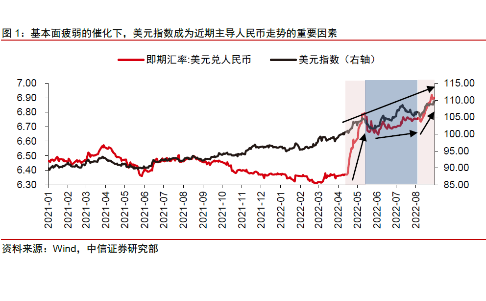 7 月以来,在国内经济修复放缓、美联储坚定收紧货币政策、欧洲能源危机加剧的背景之下,美元指数大幅上行,人民币持续走贬,并引发央行下调外汇存款准备金率以引导市场预期。在国内经济基本面疲弱的催化下,美元指数成为主导人民币走势的重要因素,汇率已经脱离了人民币的实际供需。但我们认为,当前人民币汇率走弱过度承担了美联储高通胀与欧洲能源危机的影响。在强美元的大背景下,人民币短期内仍将承压但不应把“人民币是否破7”看做是人民币贬值行情的关键点位,应理性看待国际形势复杂多变下汇率的波动。 ☟☟☟ 债市启明系列:汇率临7,如何看待这一关键点位?-20220906-中信证券-35页.pdf-size0.97MB