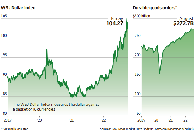美元走强有可能破坏美国制造业复苏,原因是外国生产商向美国销售产品时会获得优势。美元兑欧元、日圆、英镑和其他货币的汇率飙升,使得美国进口外国商品更便宜,而对外国买家来说,美国制造并出口的商品会变得更加昂贵。对于在海外经营工厂的美国制造商来说,由于美元走强造成的不利汇率,它们以外币计价的销售额现在兑换成美元后价值更低了。 ☟☟☟ 华尔街日报-2022-10-10.pdf-size5.54MB