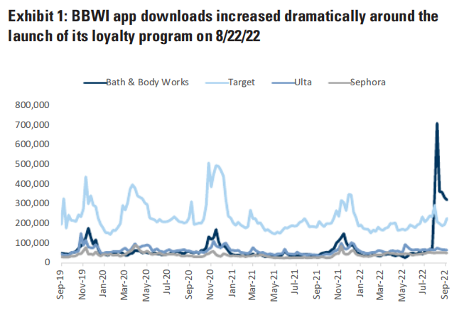 在这篇文章中,我们分析了BBWI的网络流量和应用下载量,与其他同行,包括TGT、ULTA和丝芙兰,显示从8月底开始显著上升。我们还介绍了我们的BBWI促销跟踪,包括3芯蜡烛价格和免费送货。我们还讨论了增长驱动因素和22财年的公司指导,详细介绍了新类别(即护发和皮肤护理)的上行潜力,并提供了我们9/27/22渠道检查的要点。此外,我们在第三季度收益之前更新了ULTA的预期,基于一个稍高的薪酬假设,因为我们的检查指向了美容类别的持续势头。 ☟☟☟ Americas Retail_ Specialty Hardlines_ BBWI Digital Checks Reveal a Significant Uptick in App Downloa-size0.52MB