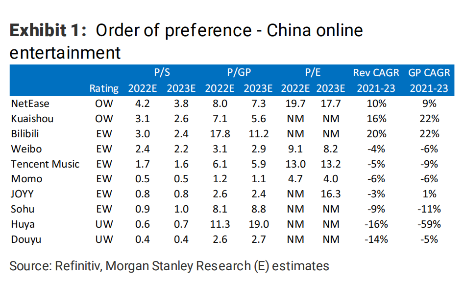 在中国宏观复苏低于标准的情况下,我们更青睐拥有1)市场份额增加、2)下半年盈利能力/利润率强劲提高的公司。网易和快手是我们在中国唯一的在线娱乐公司。 ☟☟☟ Morgan Stanley-China Online Entertainment Limited Recovery-97963750.pdf-size2.52MB