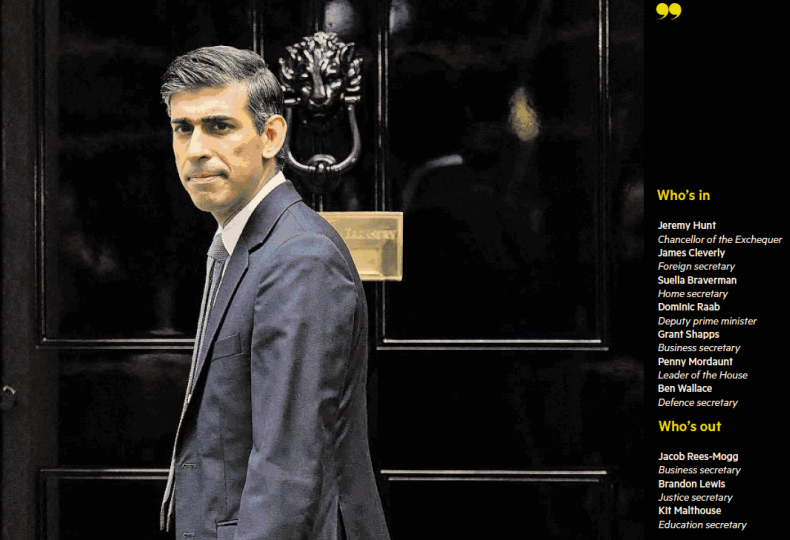 苏纳克表示,英国正在经历严重的经济危机,他将经济稳定和信心置于本届政府议程的核心,用行动而不是语言来团结整个英国。并承诺将建立更强大的英国国民医保制度、更好的学校、更安全的街道,控制英国边境,加强环境保护等。 ☟☟☟ 金融时报(亚洲版)-2022-10-26.pdf-size14.61MB