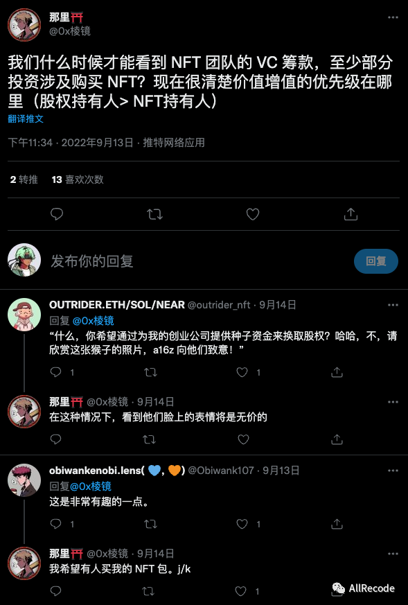 当风险投资进来时,公司的价值累积优先权自然会转移到股权所有者而不是NFT持有人身上。毕竟,投资者为股权支付了高额的费用,而且不拥有任何NFT。他们需要从他们的投资中获得10倍的回报。