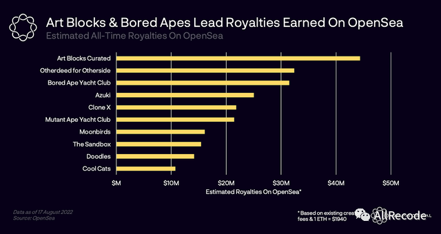 对于2021/2022年初的PFP团队来说,我更愿意把他们过去的版税收入看作是为他们的财务部筹款,而不是代表未来经常性收入的一个真正来源。更糟糕的是:创作者的版税正在向0竞赛,像X2Y2这样的市场平台已经让版税成为可有可无,以增加购买需求。