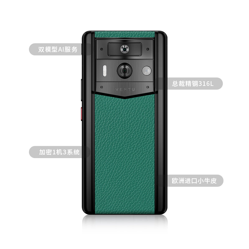 VERTU METAVERTU II Web3 AI手机 黑陶黑色维罗纳绿小牛皮 12GB+512GB